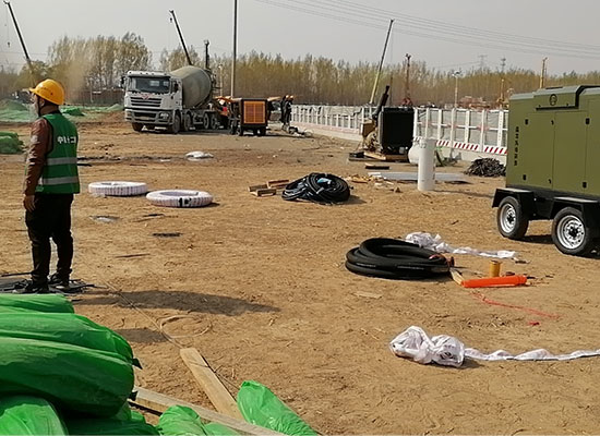 中鐵十二局雄安新區液壓濕噴機施工現場